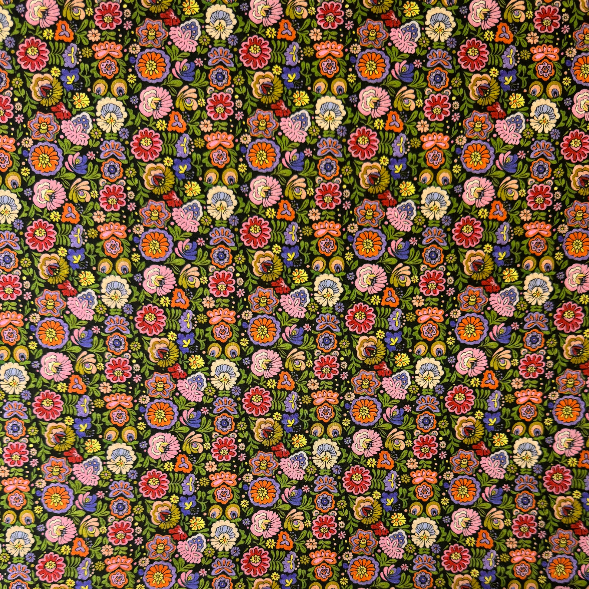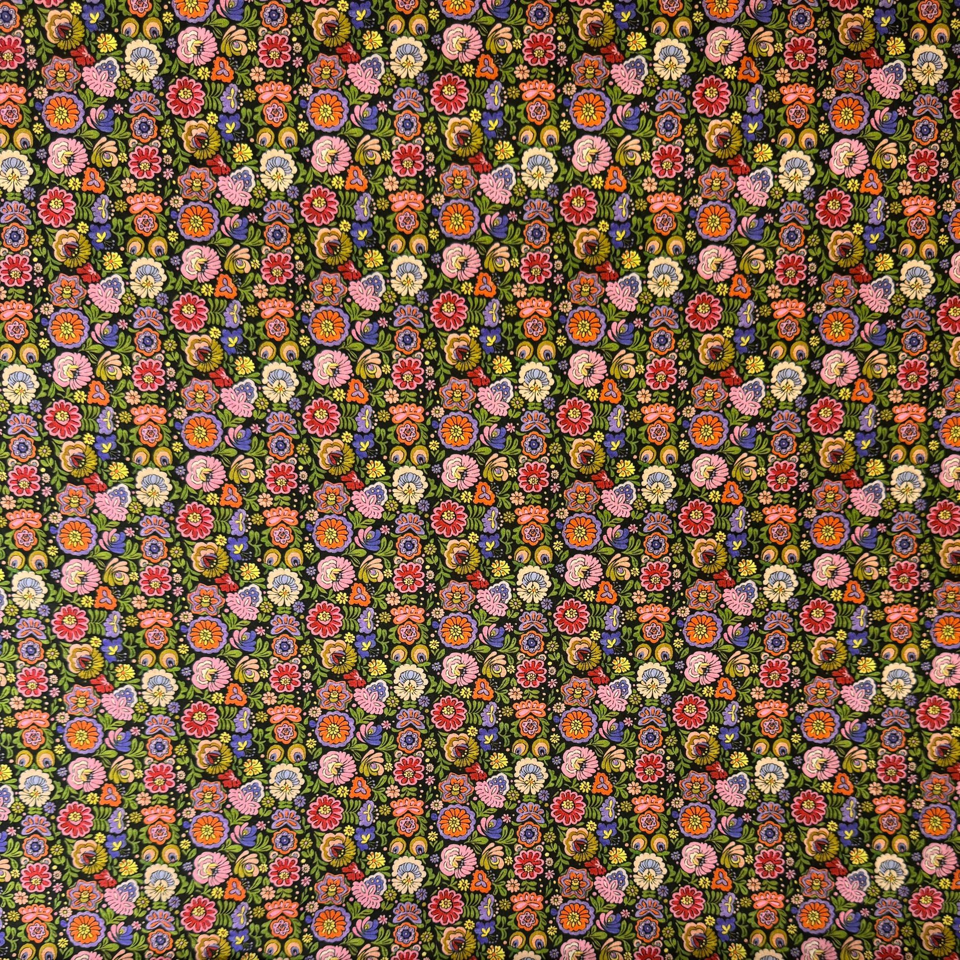 Bursting with the exuberant spirit of the Swinging Sixties, this design originally created by Liberty in 1965 showcases fantastical folk-style booms on dark, textured backdrops. Begonia is part of The Audience act of Retold, celebrating the characterful and lively Liberty shopper, from Oscar Wilde in the 19th century to the artists, writers, musicians, rock legends, models and actors that have flocked to Regent Street since – our discerning audience is one of Liberty’s most inspiring muses for SS25.