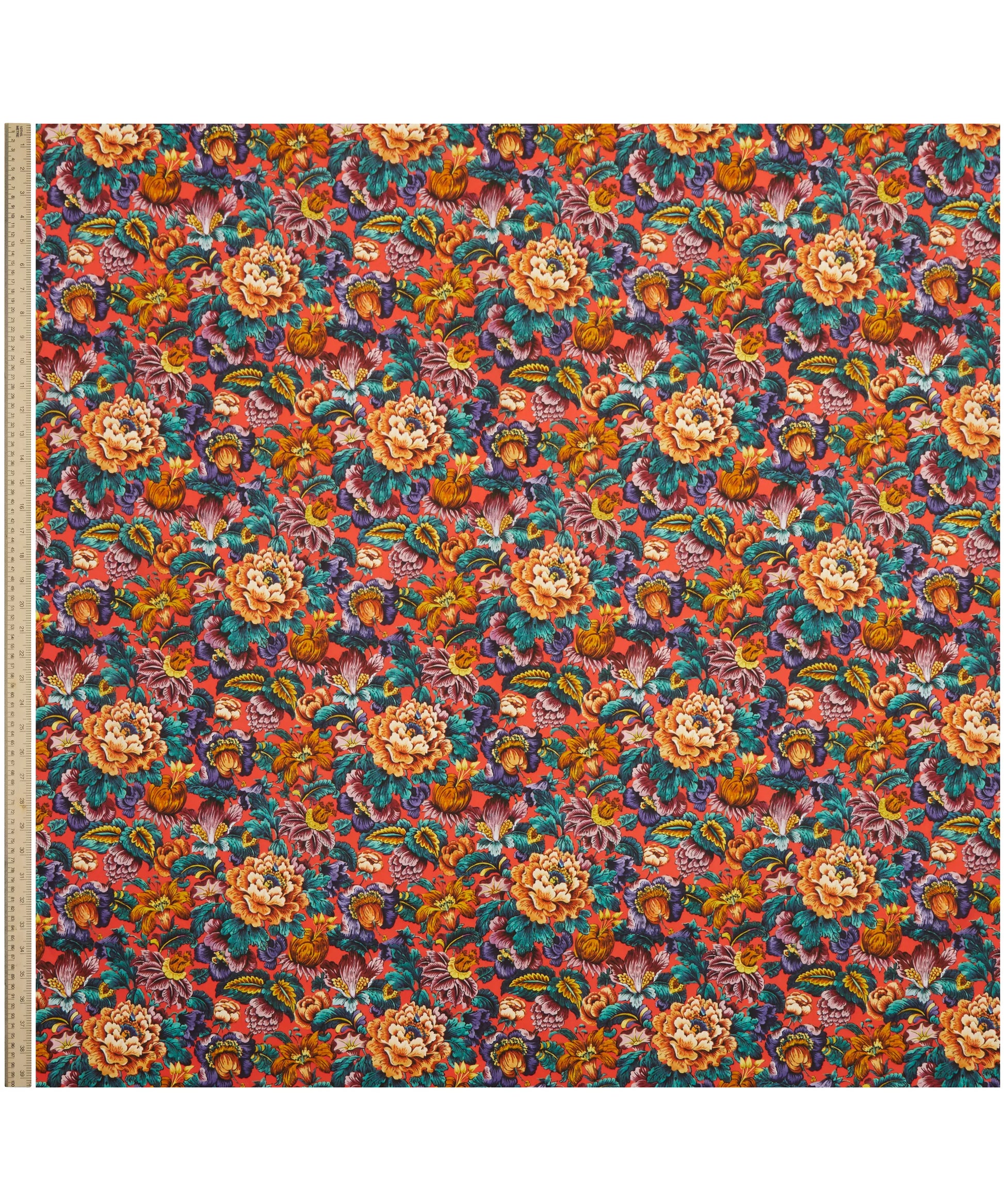 Inspired by a hand-painted artwork discovered in the Liberty archive, this opulent botanical showcases an abundance of magnificently displayed blooms. The unfurling petals of peonies, chrysanthemums and lilies gracefully cascade amidst a tapestry of lush foliage, meticulously weaving together a multisensory visual feast.