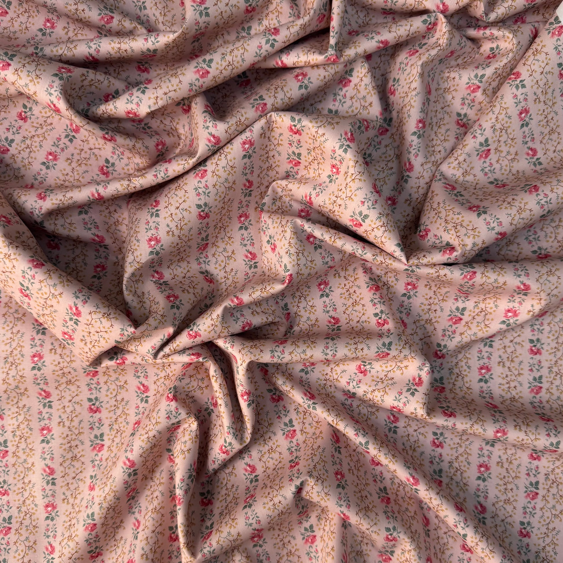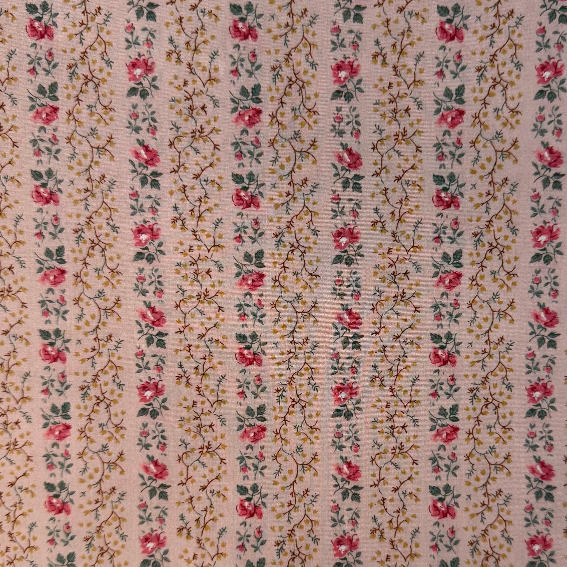 Drawing inspiration from a vintage Liberty design originating in 1957, Evie Stripe has been lovingly revived with a touch of modern finesse and recoloured in a variety of light and dark palettes. Its exquisite blend of delicate buds and roses, intricately woven into a directional stripe layout, imbues the pattern with a uniquely eclectic charm.