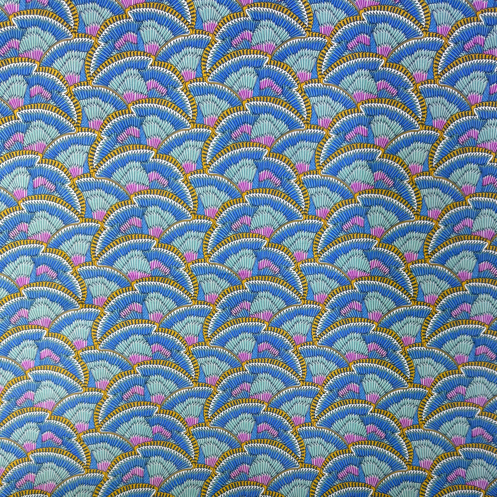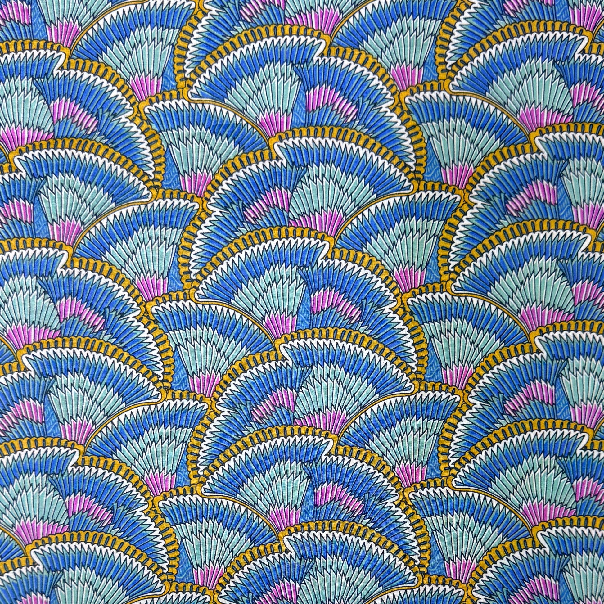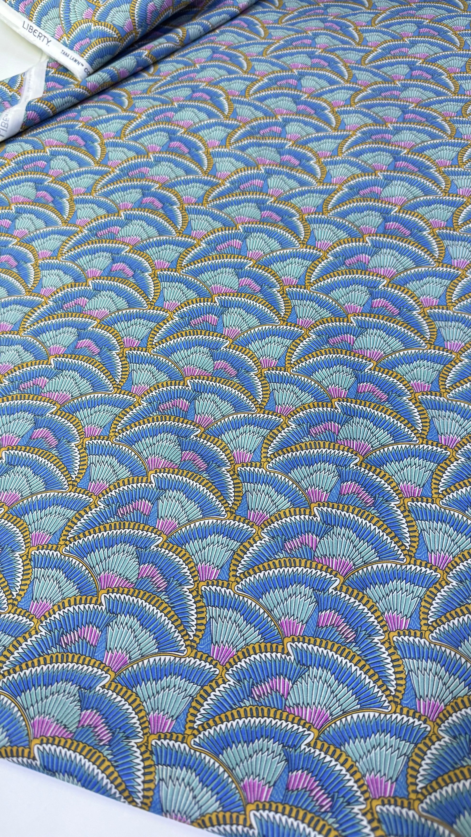 The wing-like shapes of this immersive pattern almost seem to rise and unfold in unison, creating a complex choreography of form. Referencing the classical myth of Icarus, the design was derived from an archival Liberty piece from the late 1980s, with each element meticulously redrawn to retain the intricate linework of the original. Icarus is part of the Universe story of our Autumn/Winter 2023 collection - reflecting the enduring symbolic power of stories to explain the world around us, these designs capture a realm of fierce passion and drama.