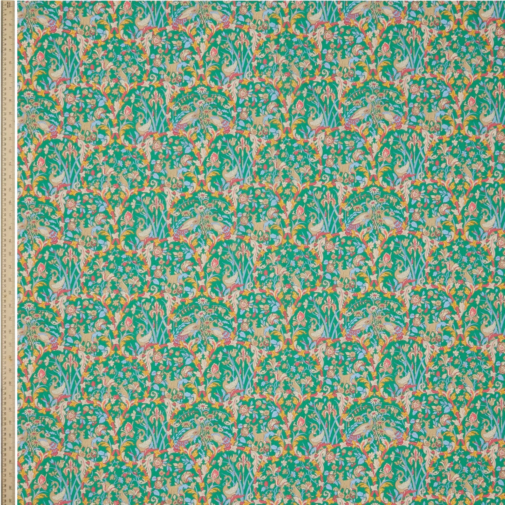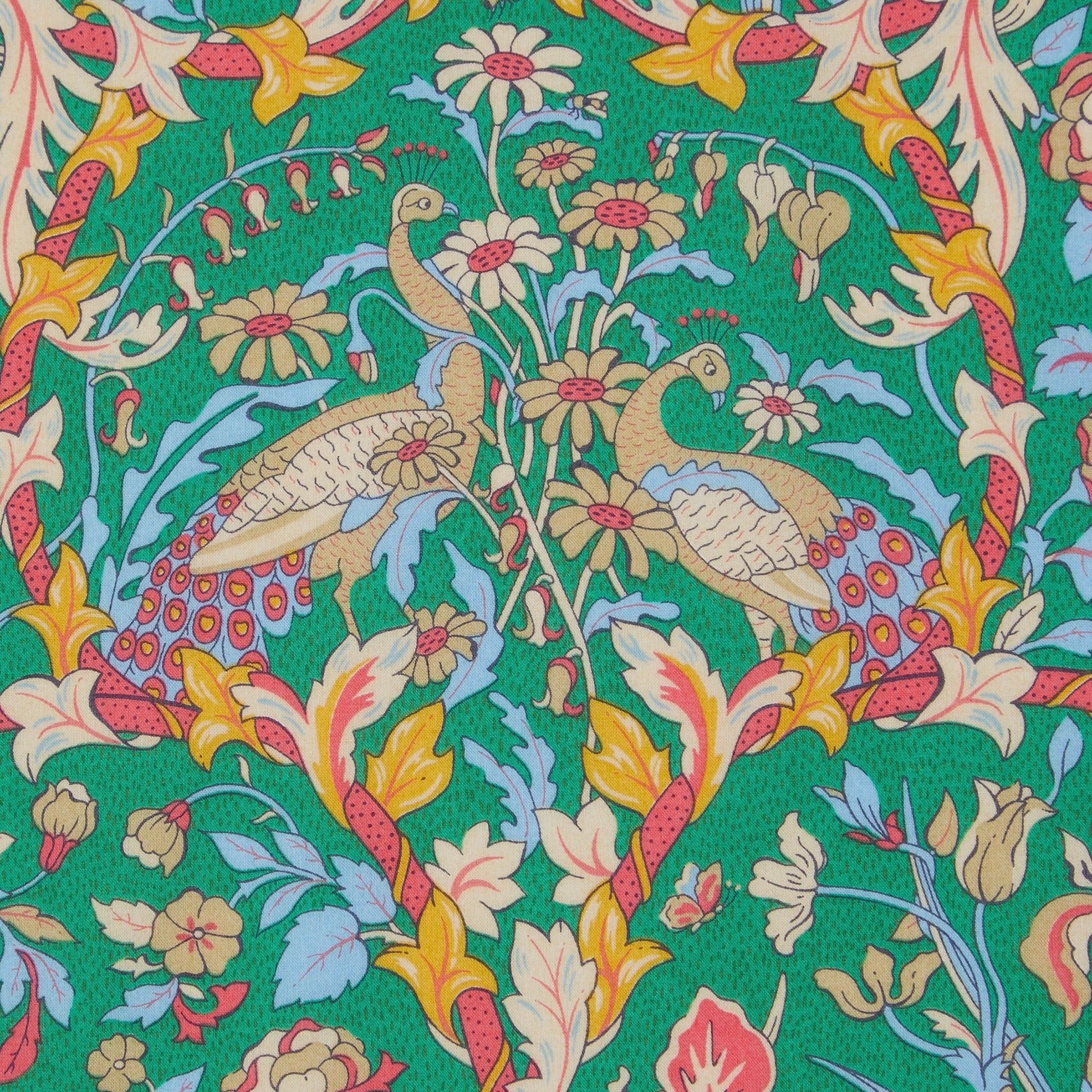 Hand-painted in the Liberty studio, Joan tells a poignant story of collaboration across generations. This Arts & Crafts style conversational is a modern iteration of Walter Crane’s timeless ‘The Four Seasons’ textile pattern. Looking through four vignettes framed by trailing ivy, each floral scene symbolises a distinct season, teeming with nature’s wonders. Amidst delicate roses, bluebells, tulips, daisies and irises, one discovers a lively cast of characters: peacocks, butterflies, swans, hares, frogs, bees, and deer. This print is part of the second chapter of this collection, Collaboration, which reflects the current design team’s celebration of the techniques and styles of their predecessors - bridging the gap between past and present.