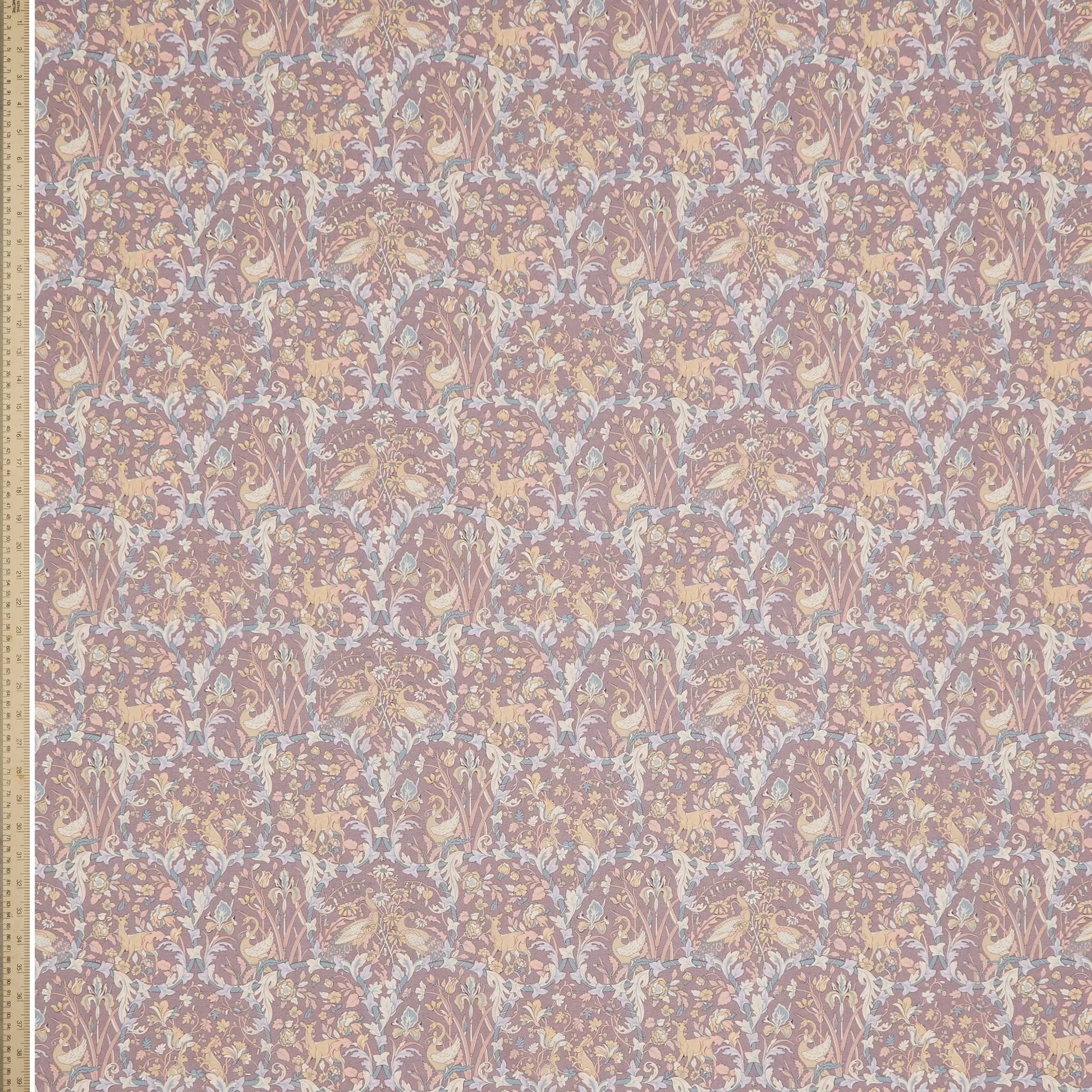 Hand-painted in the Liberty studio, Joan tells a poignant story of collaboration across generations. This Arts & Crafts style conversational is a modern iteration of Walter Crane’s timeless ‘The Four Seasons’ textile pattern. Looking through four vignettes framed by trailing ivy, each floral scene symbolises a distinct season, teeming with nature’s wonders. Amidst delicate roses, bluebells, tulips, daisies and irises, one discovers a lively cast of characters: peacocks, butterflies, swans, hares, frogs, bees, and deer. This print is part of the second chapter of this collection, Collaboration, which reflects the current design team’s celebration of the techniques and styles of their predecessors - bridging the gap between past and present.