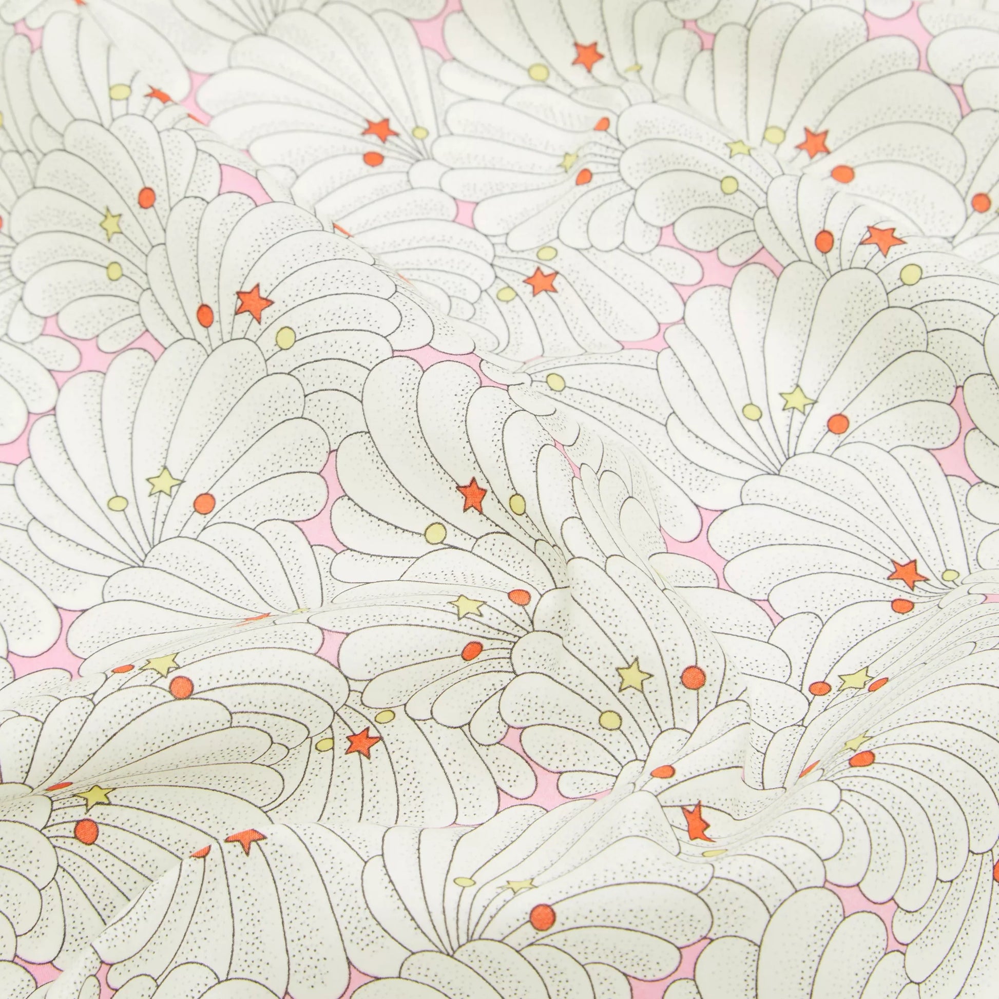 Created and printed by Liberty in 1979, Poiret Shell is a charming conversational featuring cloud-shaped seashells adorned with tiny bundles of spots and stars, representing the fanciful illustrations of artist Raoul Dufy. This print is part of The Cast act of Retold, bringing into the spotlight this play’s cast of architects, writers, artists, and designers have paved the way for the artistic movements Liberty have heralded since our doors first opened - leading figures that have played an integral part in weaving new narratives into the fabric of the building.